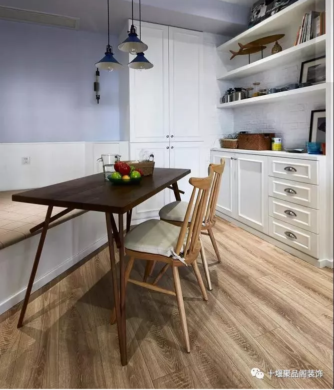 為了節(jié)省空間,在墻面制作了一排臥椅,可以當(dāng)餐椅也可以休息的坐在此處。